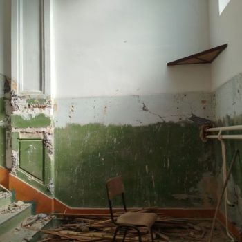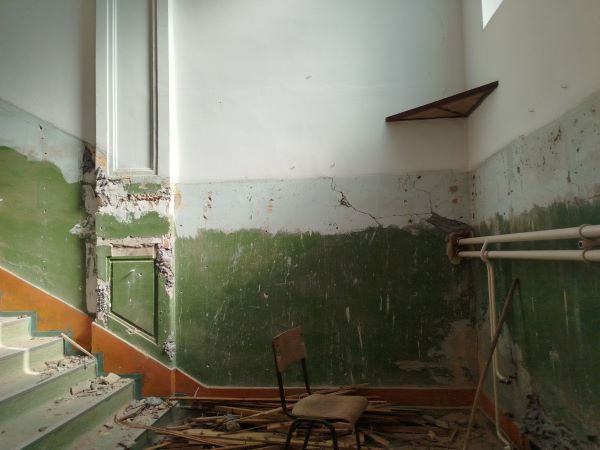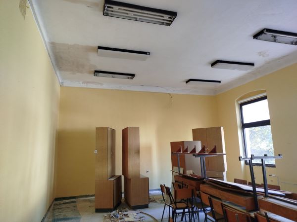Ušli smo danas u zgradu da iznutra vidimo šta se dešava? Jedno veliko gradilišto. Skinuta je lamperija gde god je bila, a iza nje izvirile su pukotine u stubovima, dugačke brazde niz zidove od sleganja tla i niz drugih grešaka koje se daju popraviti. Malo maltera, malo savremenog građevinskog materijala i to se krpi. Opštinska uprava odvojila je preko 30 miliona dinara da se zgrada okreči i da se uredi dvorište. Školi je Pokrajina dala oko 18 miliona za tavanice na spratu.