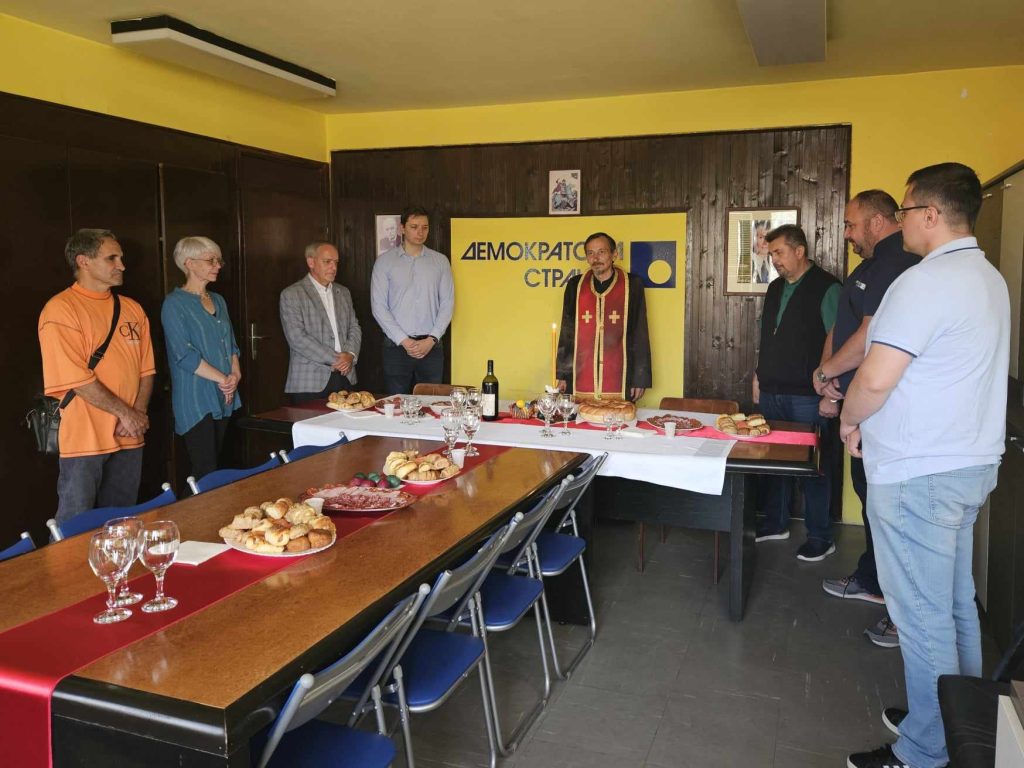 07. 05. 2024. – U prostorijama Demokratske stranke 06. maja svečano je obeležen Đurđevdan, jedan od najvažnijih praznika za članove ove političke organizacije. Slavski kolač je osveštao otac Dušan Vasić, čime je ceremonija započela u duhu tradicije i zajedništva. Pored članova Demokratske stranke, slavi su prisustvovali i brojni gosti koji su se okupili da zajedno proslave ovaj važan praznik. Atmosfera je bila ispunjena pozitivnom energijom uzn svečaersku trpezu i razgovor.