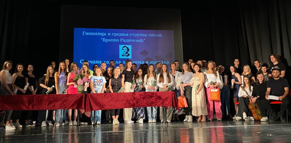 20.06.2024. – Intoniranjem himne Gaudeamus igitur počela je svečanost uručivanja diploma učenicima generacije rođene 2005/06. godine, u pozorišnoj sali centra