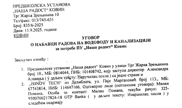 Na poslednjoj sednici Skupštine opštine Kovin, odbornici su bez rasprave usvojili Izveštaj o realizaciji godišnjeg plana rada PU „Naša radost“ za 2024/2025. godinu. Iako je dokument prošao gotovo neprimećeno, u njemu se nalazi primer koji pokazuje kako i najmanje javne nabavke mogu biti teren za nameštanje tendera, napumpavanje cena i izvlačenje javnog novca, ovog puta iz budžeta ustanove koja brine o deci.