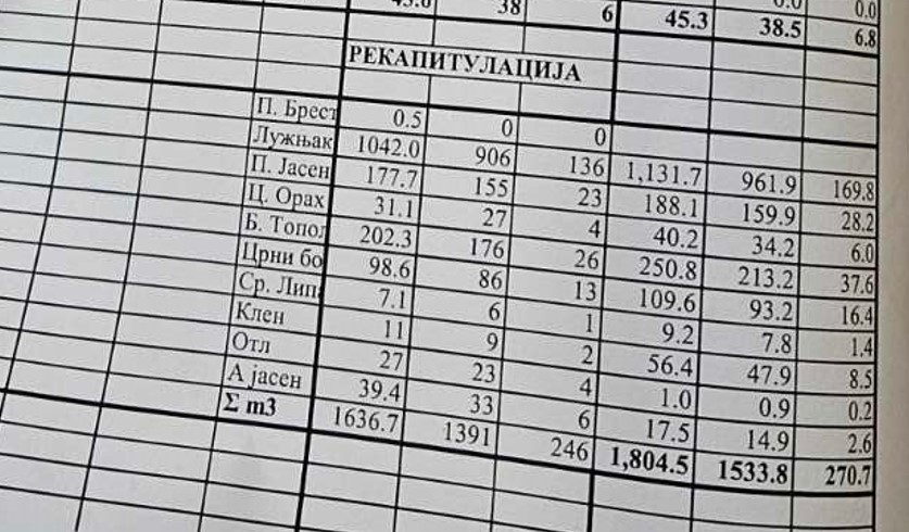 Sa više strana dobijali smo pitanja da li se zna ko seče hrastove i ostalo rastinje u Gornjoj šumi kod Kovina? Potrajalo je malo dok smo utvrdili koga da pitamo, ko gazduje ovim kompleksom? Ispostavilo se da je gazdovanje šumom dato Lovačkom udruženju „Lovac“ još pre devet godina, ali je tek prošle godine definisana parcela. Kako smo saznali, divlje i nezakonite seče bilo je u nekoliko navrata, odneto je preko 100 kubika drveta, a sada se radi o proređivanju. Po planu koji je uradio diplomirani inženjer šumarstva Dane Tepić, predviđeno je da se iseče oko 1000 kubika hrasta lužnjaka, oko 200 kubika topole, 100 kubika jasena, i drugog drveća do 100 kubika ( vidi skrin tabele). Međutim, po Stanišićevom mišljenju neće se ispuniti planirani obim, a zakon ne dozvoljava da se pravo seče prenosi na sledeću godinu. Tako da, mišljenja je on, biće posečena svega jedna trećina, oko 500/600 kubika, do kraja ove godine.