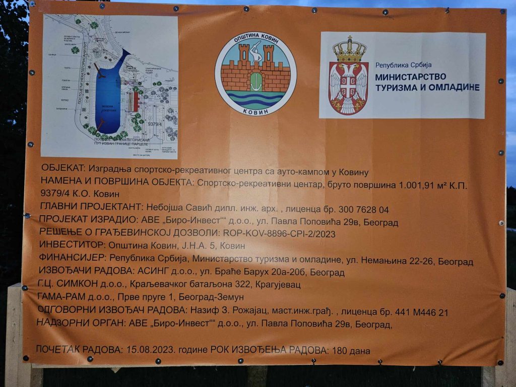 U opštini Kovin potpisan je Sporazum o regulisanju međusobnih prava i obaveza na realizaciji projekta „Izgradnja sportsko rekreativnog centra sa auto kampom u Kovinu“ koji su zaključili Republika Srbija – Ministarstvo turizma i omladine kao finansijer i Opština Kovin, kao investitor. Potpise na dokument stavili su, u ime finansijera državni sekretar Uroš Kandić i u ime investitora, predsednica opštine Kovin, Sanja Petrović”- piše portal kovinske opštine