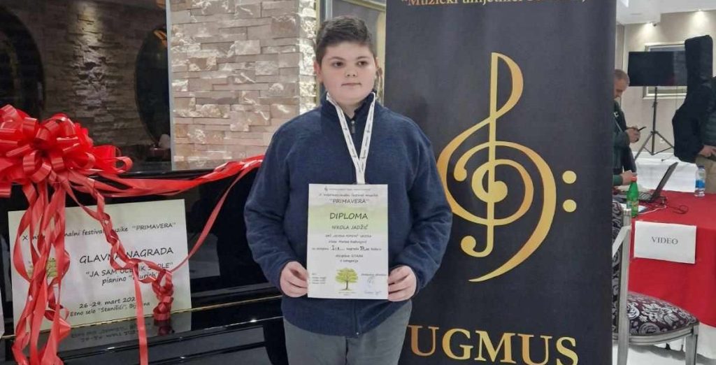 „Učenik gitare Nikola Jadžić ostvario je izuzetan uspeh osvojivši drugu nagradu na republičkom takmičenju Udruženja muzičkih i baletskih pedagoga Srbije i prvu nagradu na X internacionalnom festivalu muzike ‘Primavera’ u Bijeljini. Ovaj rezultat predstavlja potvrdu njegovog rada, upornosti i posvećenosti muzici. Posebno se ističe njegov napredak u samopouzdanju i umetničkom izrazu, što svedoči o njegovom kontinuiranom razvoju kao mladog izvođača. Sviranje instrumenta ima izuzetno važnu ulogu u razvoju dece, jer podstiče koncentraciju, razvija memoriju i finu motoriku, ali i doprinosi emocionalnoj zrelosti i sposobnosti umetničkog izražavanja. Nikola je kroz svoj rad pokazao koliko muzika može pozitivno uticati na celokupan razvoj ličnosti. Ovaj uspeh predstavlja važan korak u njegovom daljem umetničkom razvoju, uz očekivanje da će u budućnosti ostvariti još značajnih rezultata i nastaviti da se uspešno predstavlja na koncertima i takmičenjima. Posebno treba istaći značaj podrške porodice, koja kroz razumevanje, strpljenje i stalno ohrabrivanje predstavlja važan oslonac u njegovom muzičkom obrazovanju i razvoju. Upravo takva podrška daje mladim umetnicima sigurnost i dodatni podsticaj da istraju na svom putu“, ističe Nikolina nastavnica Marina Radivojević.