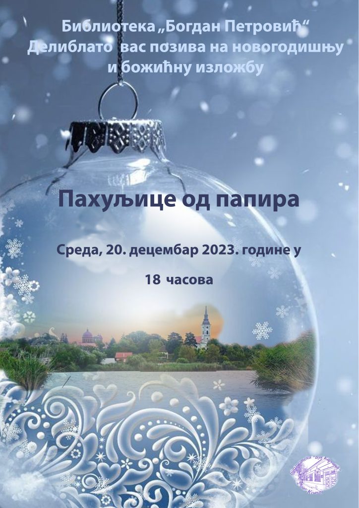 Biblioteka „Bogdan Petrović“ Deliblato poziva vas da zavirite u magičan svet – novogodišnju i božićnu bajku koja će se pred vama odigrati 20. decembra. Izložba kreativnih radova „Pahuljice od papira“ uz prateći program, biće svečano otvorena u 18:00 časova. Cilj ove izložbe je promovisanje vannastavne aktivnosti „Mali preduzetnici“ učenika OŠ „Paja Marganović“, a koju vodi nastavnica Vesna Balnožan Danilov.