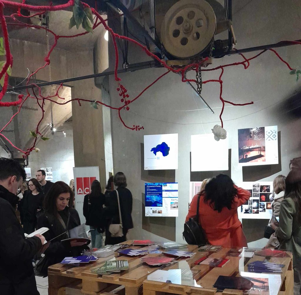 –Izlozbu je organizovalo Žensko arhitektonsko društvo. Tema ove, pete izložbe je Oživljavanje i dešava se u Silosima u Beogradu. 01. marta bilo je otvaranje i bilo je baš posećeno, uglavnom su posetioci bile arhitekte. Naš rad je predstavljao teleport sa druge strane, odnosno, ljudi koji se nalaze u silosu imali su priliku da se teleportuju u Kovin. Na plakatu se putem skeniranja QR koda povezuju sa Kovinom (gde je trenutno na Teleportu silos) i na sajtu mogu da prate izložbu koja se dešavala kod Vlade u dvoristu, koja je organizovana kao produžetak izložbe u Beogradu. Koncept oživljavanja se kroz rad provlači na više nivoa – oživljavanje kovinske publike pravljenjem izložbe, oživljavanje ideje o mestu van Beograda i kulturnom događaju van njega, samim tim oživljavanje dijaloga izmedju stanovnika dva mesta. Vladin teleport godinama unazad oživljava centar Kovina pa je to poslužilo kao inspiracija za proširivanje teme. Skeniranjem QR koda u silosu se otvara sajt .vladimirkomarica.com gde je snimak izložbe i tekst o krađi plavog turbana. Krađa je sa ovim događajem povezana u tom smislu što se i tada, kao i sada portal otvorio sa druge strane, odnosno sada u Silosima, tada u Brižu.