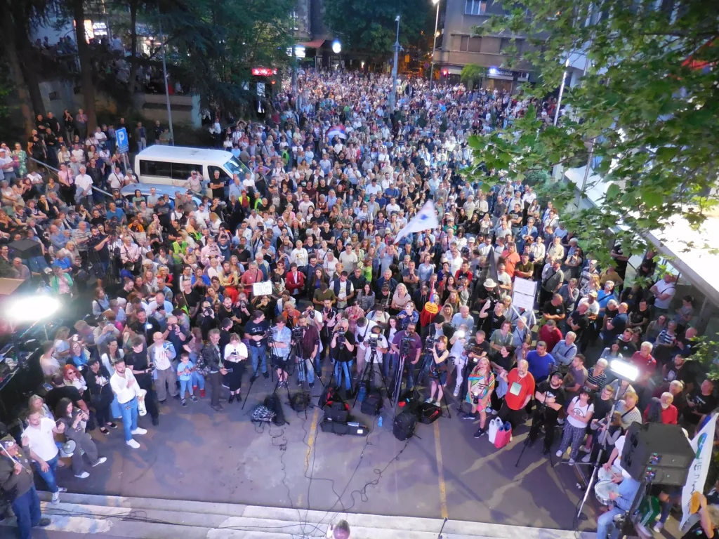 14.04.2024. – Na protesnom skupu koji je organizovalo udruženje Kreni-promeni zbog izveštavanja Javnog servisa o planovima za eksploataciju litijuma u Srbiji, ispred zgrade RTS-a u Takovskoj ulici okupilo se između 1800 i 2000 građana. Ovaj podatak dobijen je brojanjem prisutnih na seriji fotografija raznih delova prostora koji su zauzeli demonstranti, a koje je Arhiv javnih skupova snimio između 19:30 i 19:40 časova.