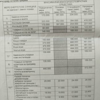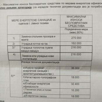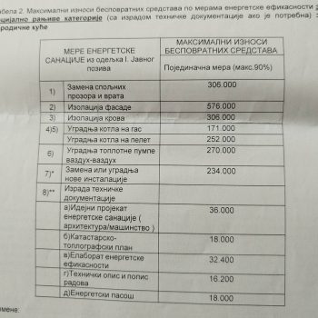 Na fotografijama se može videti za koje se sve namene mogu tražiti sredstva i koji su gornji limiti pojedinačno. Svi oni koji žele da konkurišu treba da sačekaju da konkurs bude objavljen ( verovtno do 14. decembra)i da podrobno iščitaju uslove. Ali nešto od dokumenata već mogu da prireme, poput računa za strujju, dokaz o vlasništvu, potvrdu ili odobrenje od stanodavca da tu žive i sl.