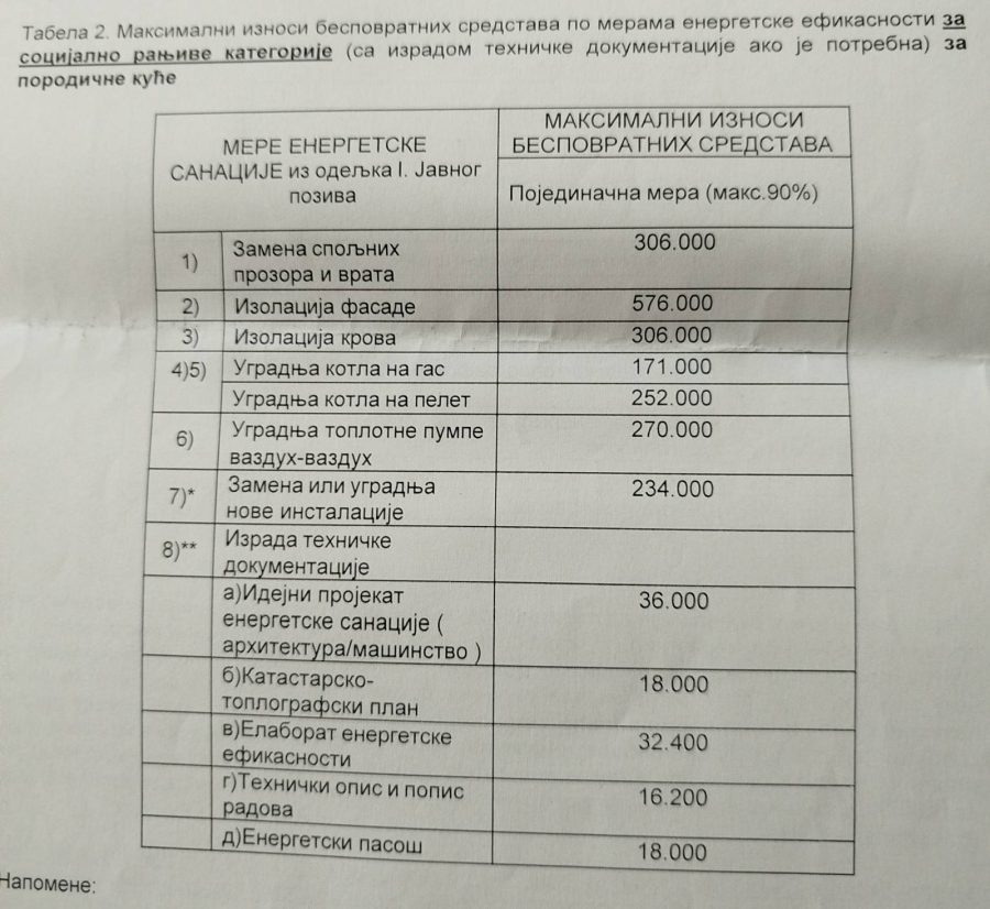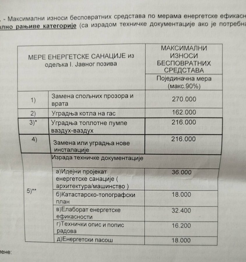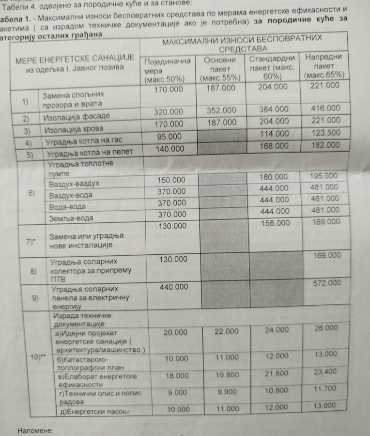 Na fotografijama se može videti za koje se sve namene mogu tražiti sredstva i koji su gornji limiti pojedinačno. Svi oni koji žele da konkurišu treba da sačekaju da konkurs bude objavljen ( verovtno do 14. decembra)i da podrobno iščitaju uslove. Ali nešto od dokumenata već mogu da prireme, poput računa za strujju, dokaz o vlasništvu, potvrdu ili odobrenje od stanodavca da tu žive i sl.