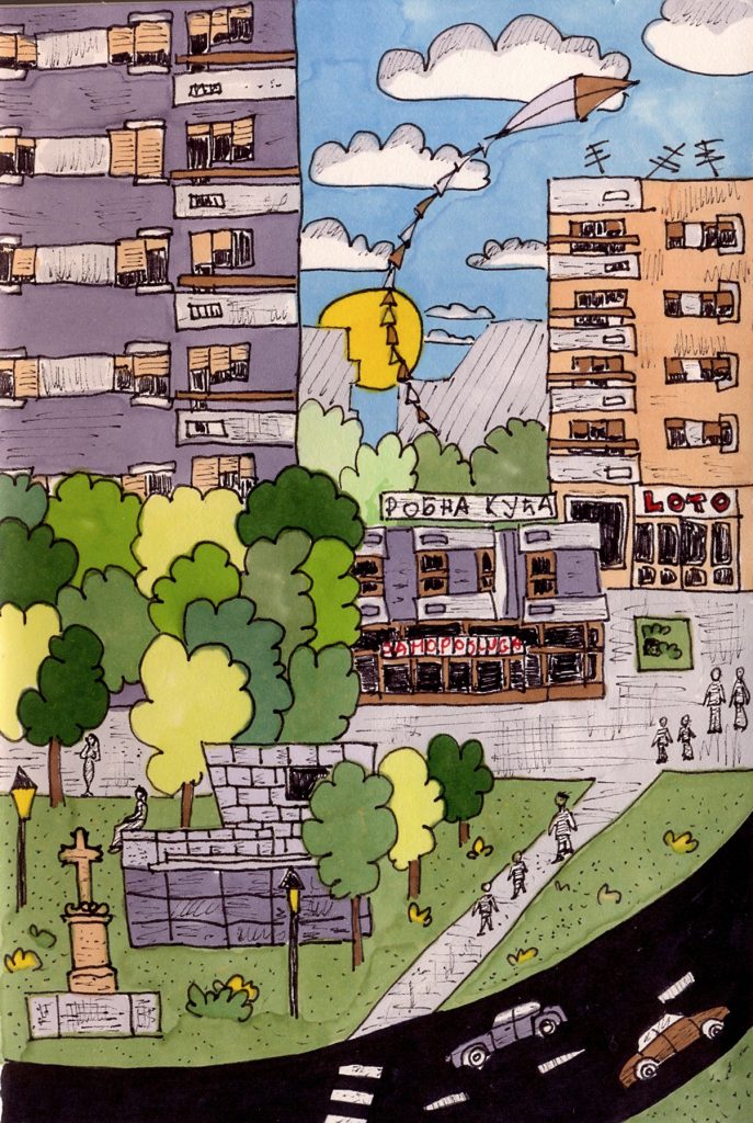 Druga slika iz edicije Kovin u deset slika Vladimira Komarice Milera, jeste stara ili prva Robna kuća kod devetospratnice na adresi JNA 2. Odmah iza Robne kuće je četvorospratna zgrada koju su nastanili zaposleni u Neuropshijatrijskoj bolnici u Kovinu, a u prizemlju je bio LOTO. Nekada je bilo pitanje života da se uplati listić i sedelo se i pratilo. Suzana Mančić je svoje ime i popularnost izgradila kao LOTO devojka. I ni jedna ni pre ni posle nije uspela da je dostigne. A u Robnoj kući, na dva sprata i u podrumu bilo je sve, od salame do bele tehnike. Asortiman i kvalitet renomiranih domaćih proizvođača koji su tada pravili kvalitetne stvari. Kako konfekciju, tako i elektroniku, tehniku, nameštaj…