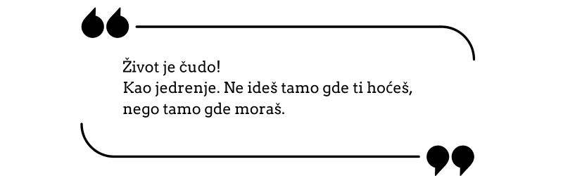 Život je čudo. Kao jedrenje ( pošto ja vozim jedrenjak), ne ideš gde ti hoćeš, nego gde moraš. Kako duva vetar tako se i ti prilagođavaš.