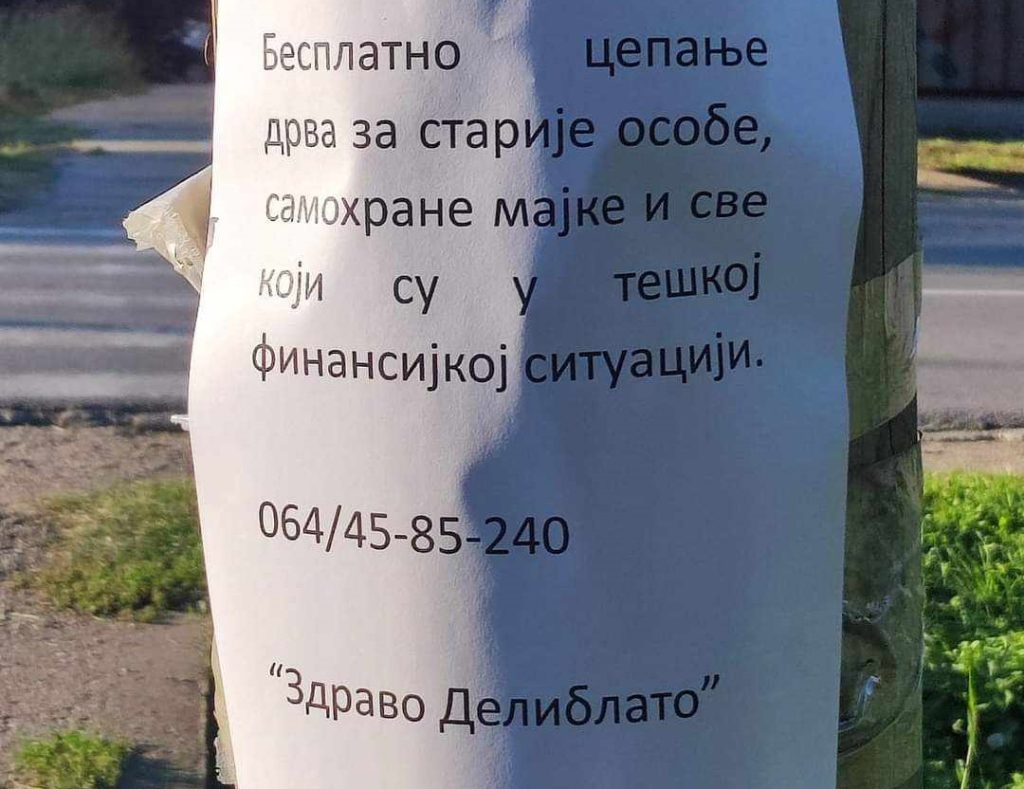 Naime, oglas o kome je reč poziva meštane Deliblata koji su stari, bolesni, nemoćni, samohrane majke, da se jave Udruženju Zdravo Deliblato jer ovi momci će im besplatno iscepati drva za zimu.